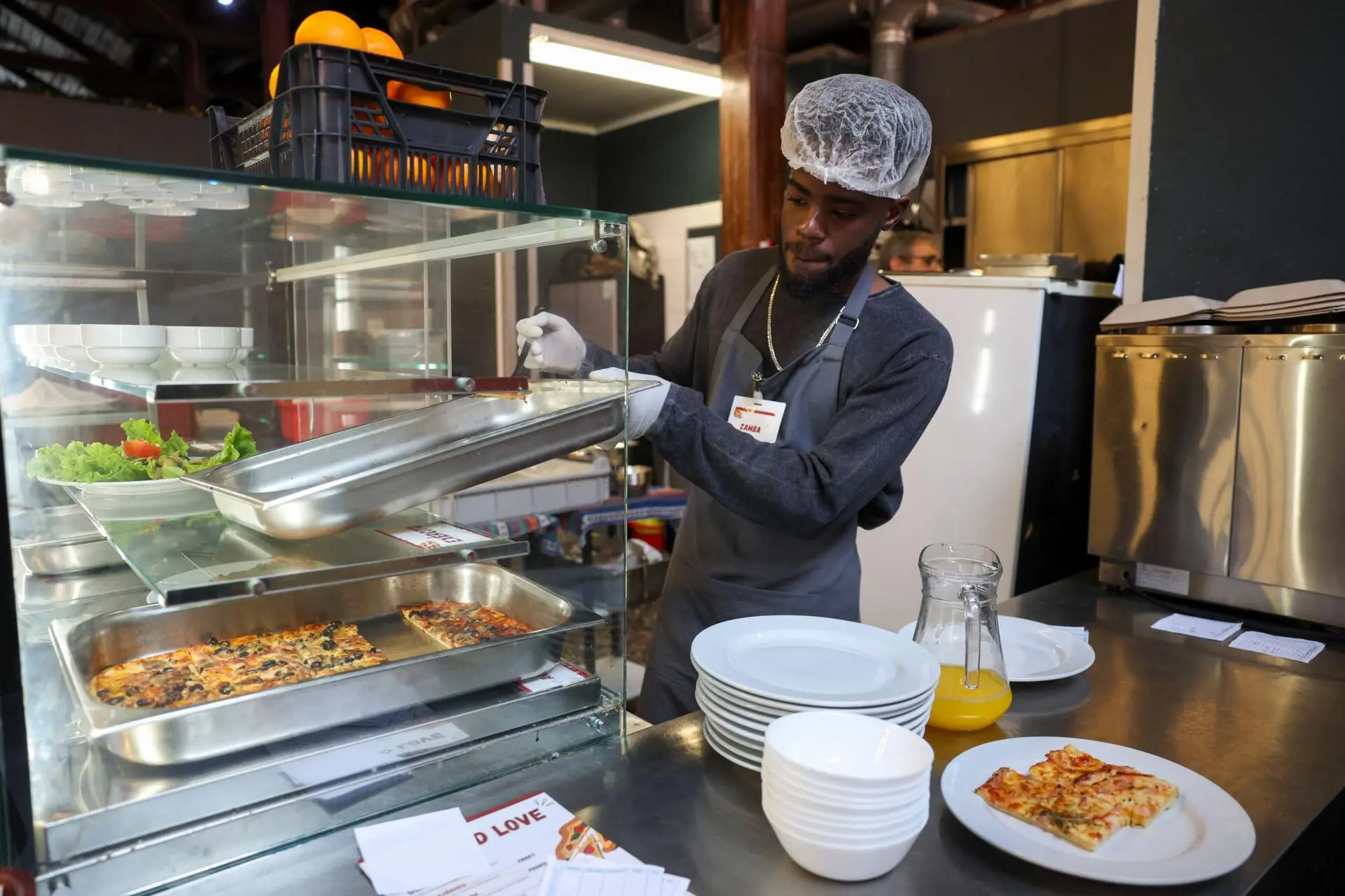 Cada cliente deixa um donativo que reverte para quem preparou e serviu a pizza