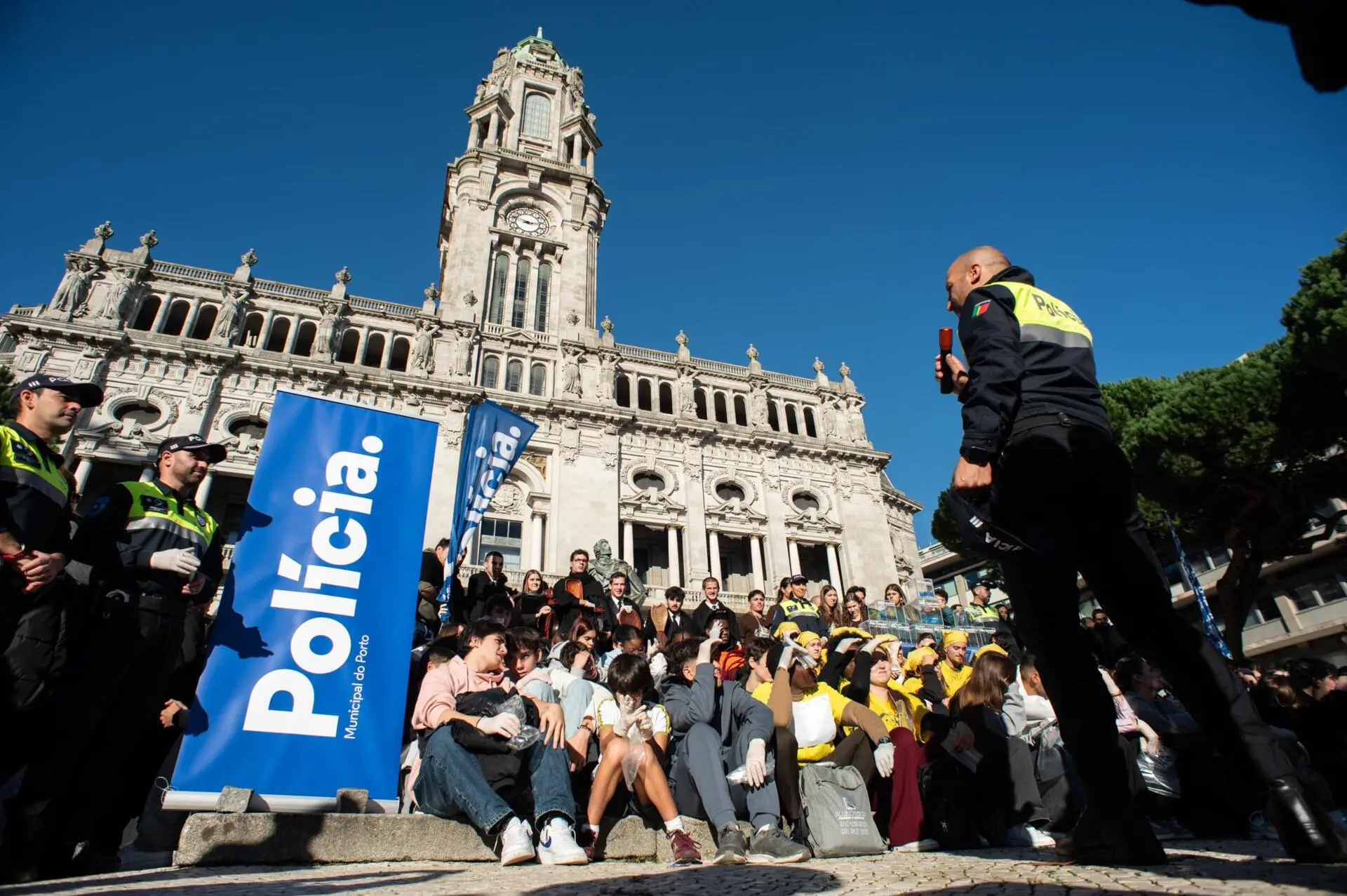 Na Praça General Humberto Delgado já se preparam as estruturas para as típicas luzes de Natal e a árvore já se encontra praticamente montada, mas hoje o motivo que justifica haver uma multidão reunida em frente à Câmara do Porto era diferente: vários alunos aceitaram o desafio de recolher pontas de cigarro lançado pela Polícia Municipal e pela Federação Académica do Porto (FAP) para assinalar o Dia Mundial do Não Fumador.