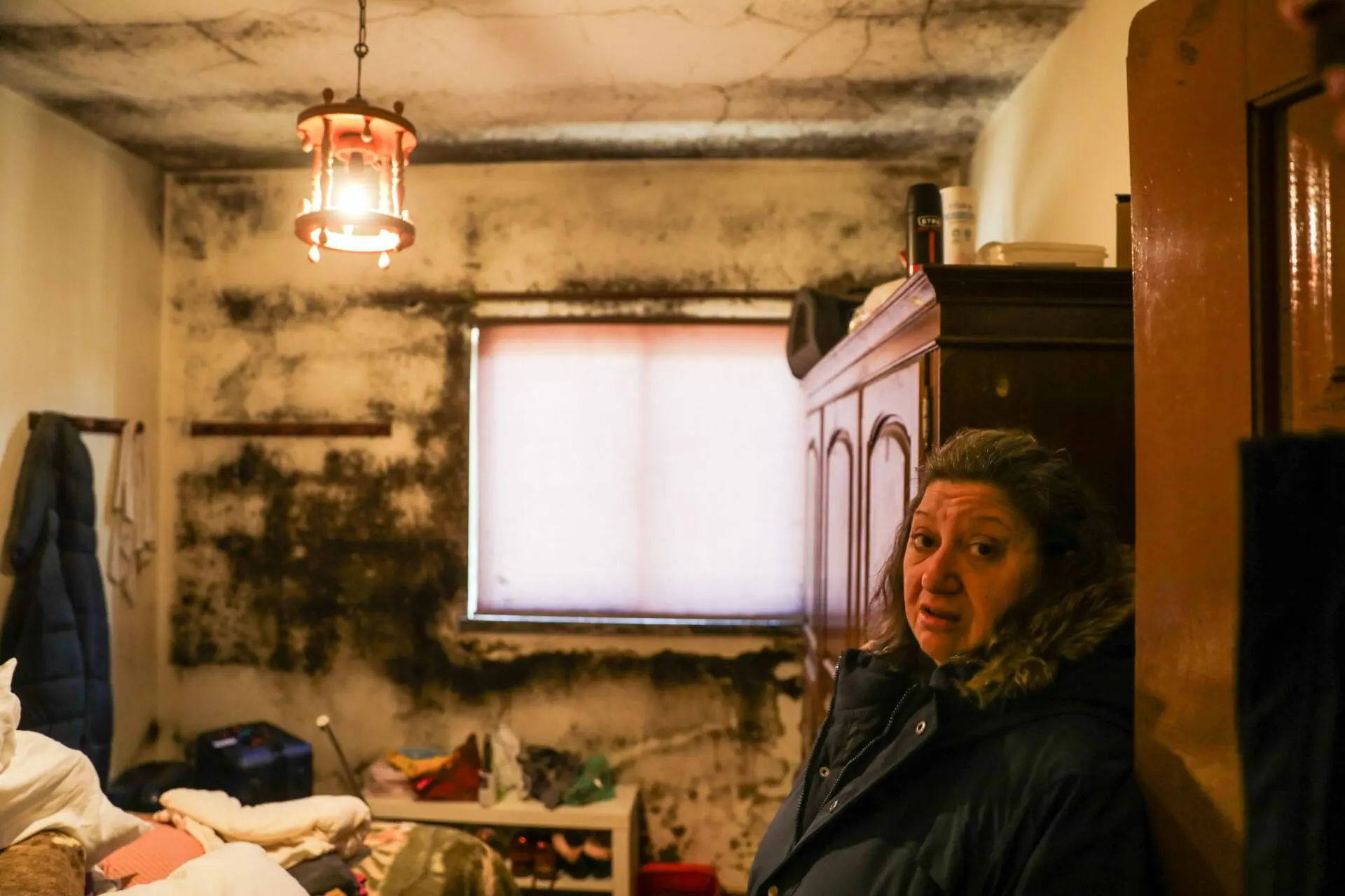 Na casa, chove dentro da casa de banho, uma parte do telhado voou e foi substituído por umas chapas, o quarto de Filomena e do companheiro Vítor está negro de humidade e, no da sua sogra, há uma grande racha que se foi abrindo no teto.