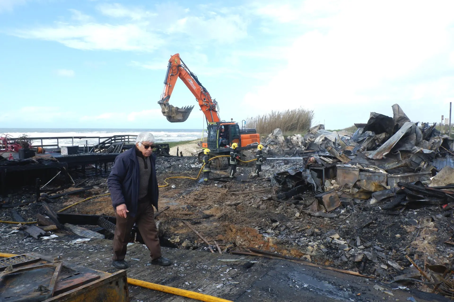 "Foi um combate difícil e não sobrou muito deste bar de praia", lamentou o vereador da Limpeza Urbana, Pedro Areias. Durante a manhã, a autarquia deslocou para o local uma máquina retroescavadora para ajudar na limpeza do espaço. Agora, cabe ao proprietário reconstruir, mas a Manuel Maia já faltam as forças.