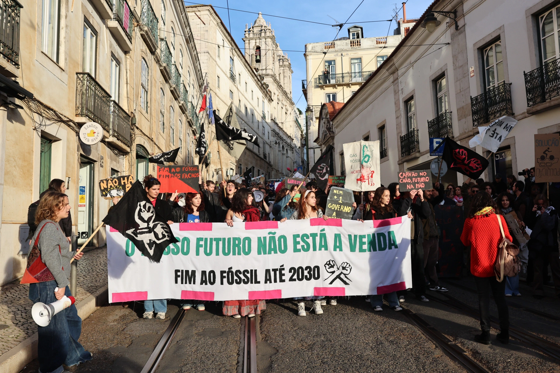 A manifestação, organizada por um coletivo que inclui a Greve Climática Estudantil e a Climáximo, tem lugar depois de uma semana de protestos estudantis que reivindicaram o fim ao fóssil e em que escolas foram fechadas pelos estudantes.