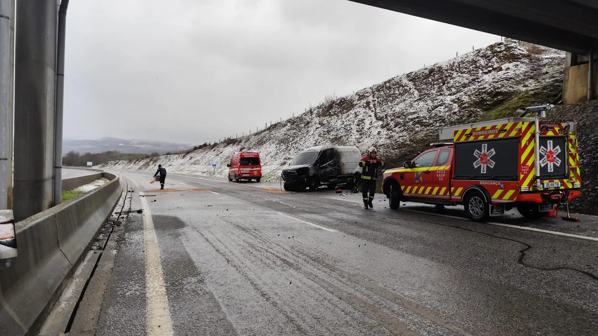 O comandante dos Bombeiros de Bragança, Carlos Martins, indicou que na zona do acidente "não há neve, mas o piso está escorregadio".