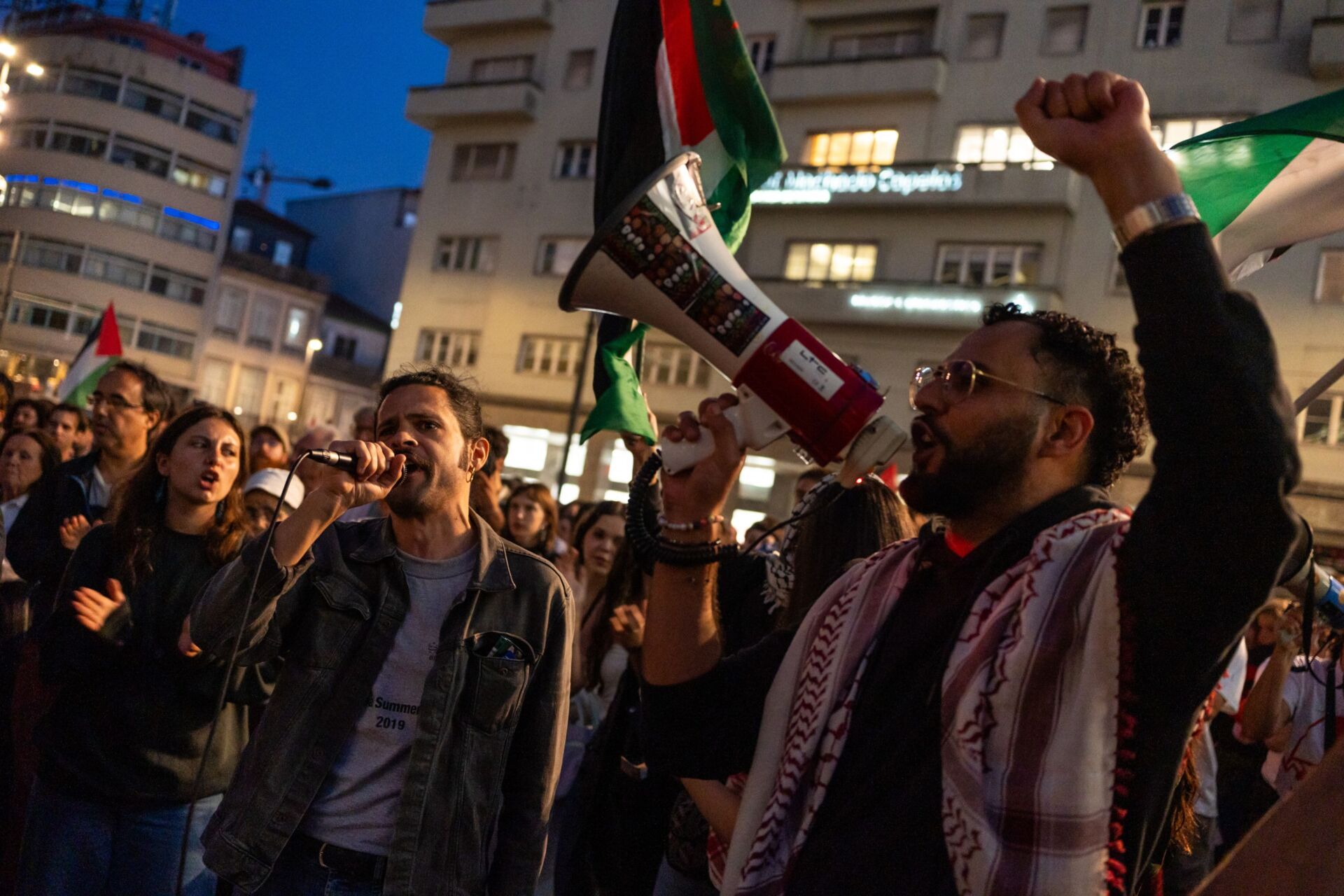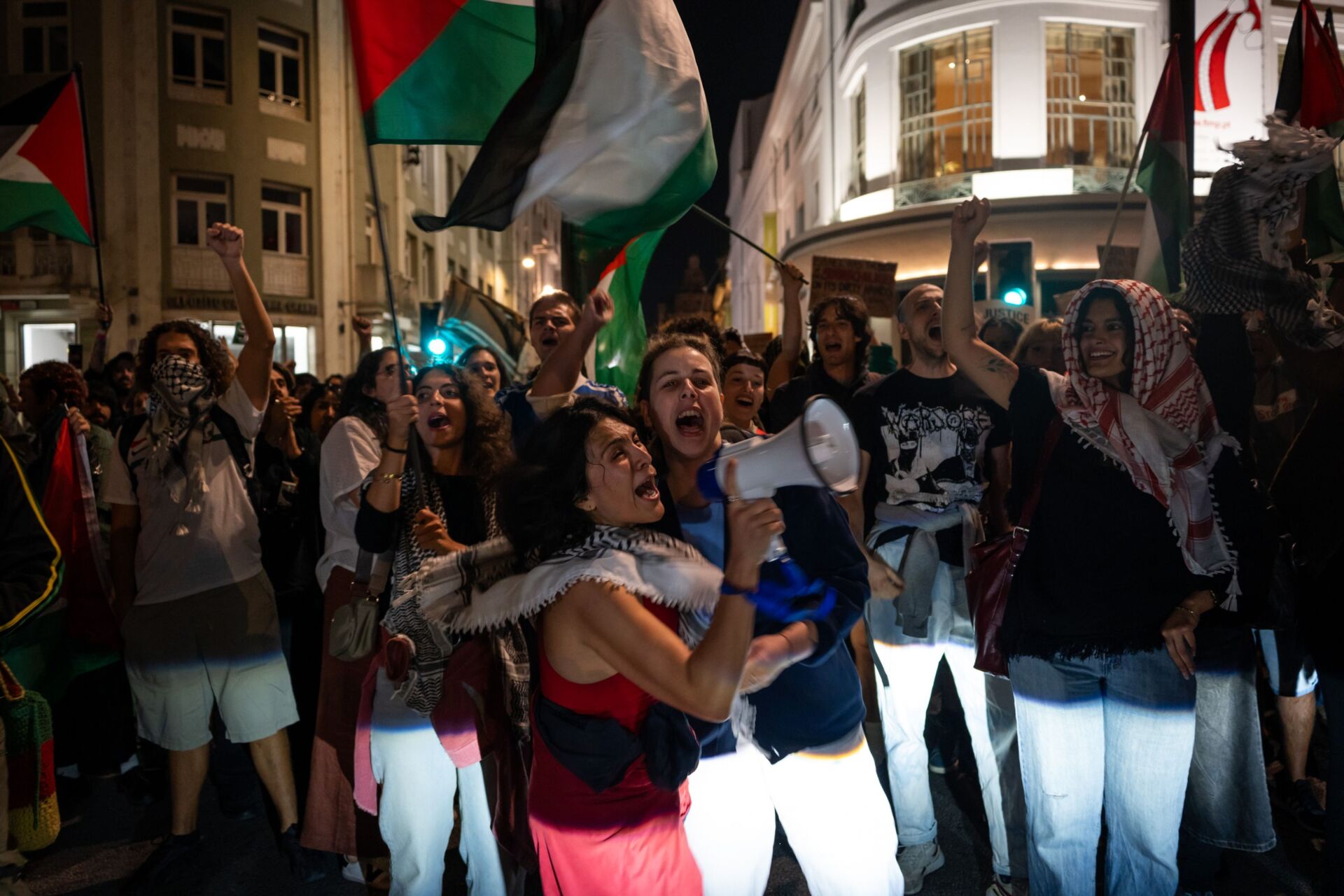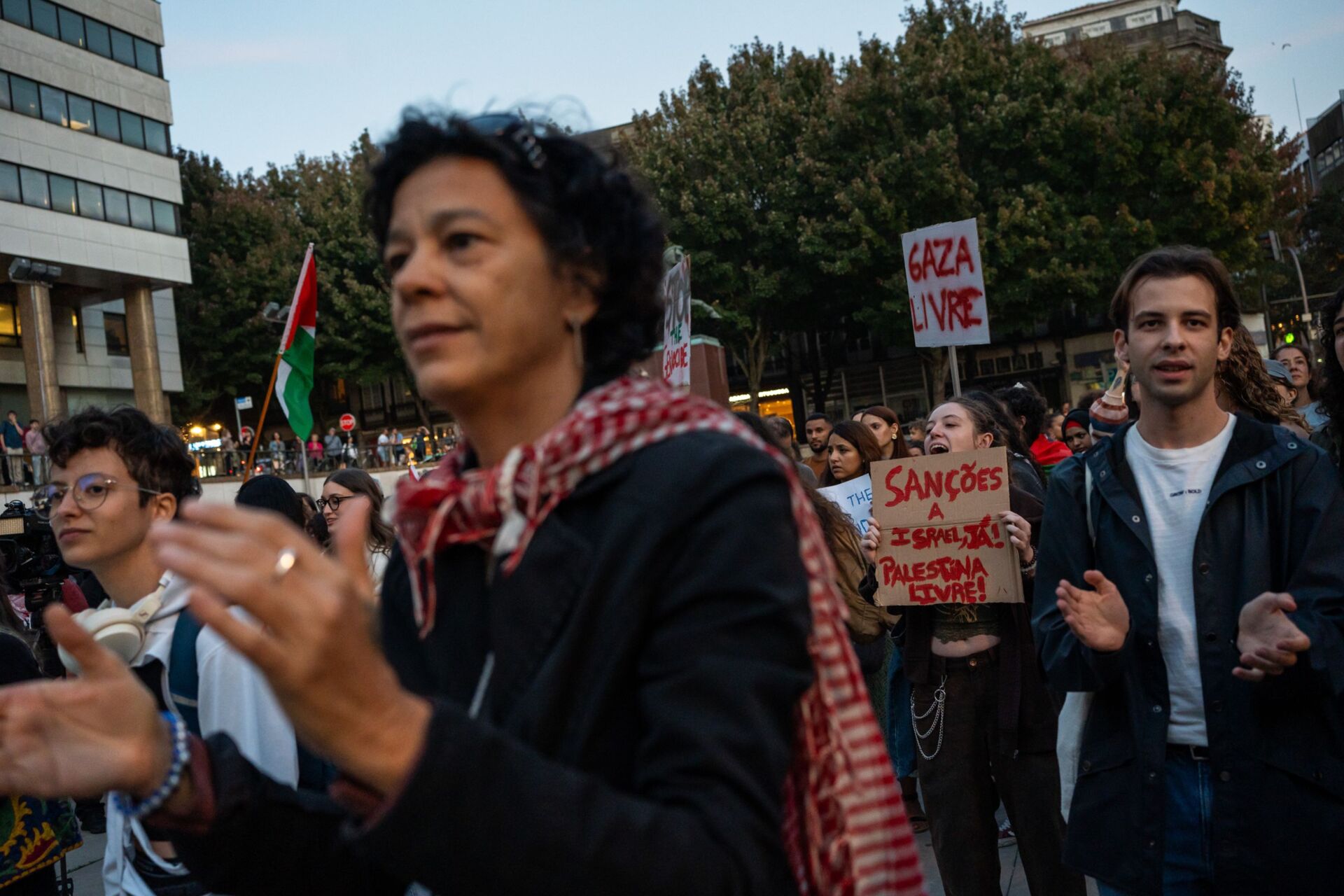 Milhares de pessoas manifestaram-se, esta quinta-feira, na Praça D. João I, no Porto, em solidariedade com os ativistas portugueses detidos por Israel. Foi cortada a circulação ao trânsito no centro da cidade.