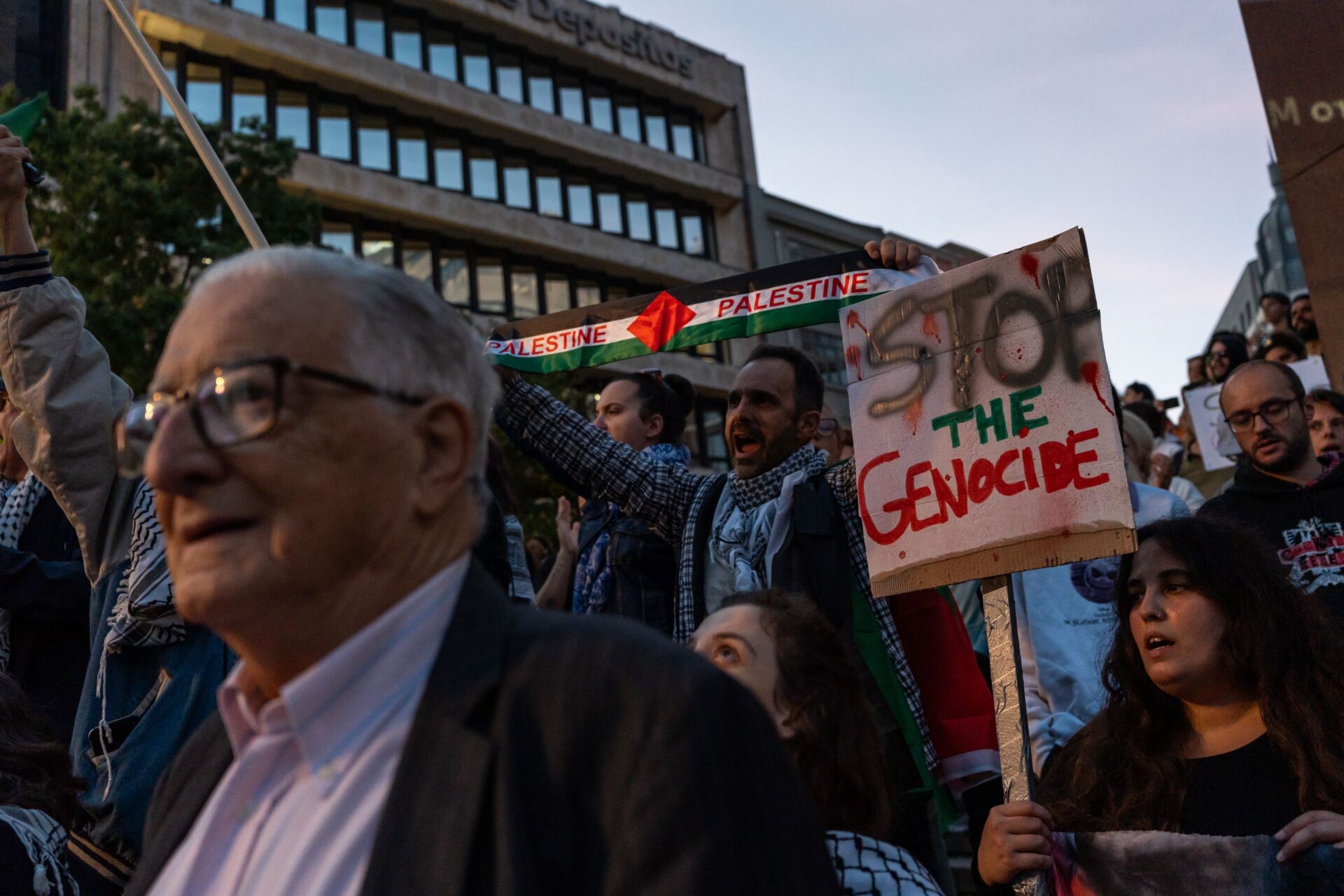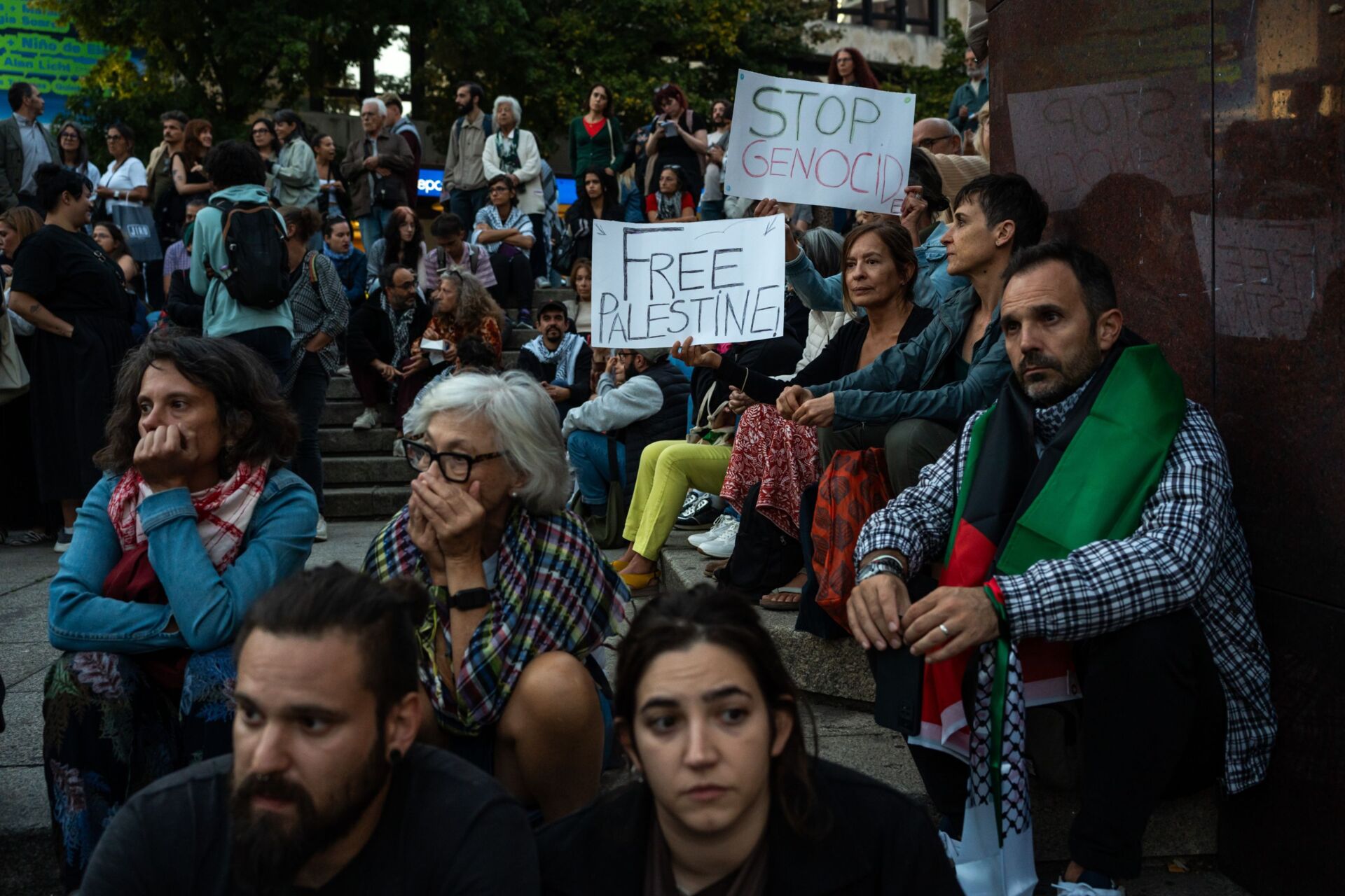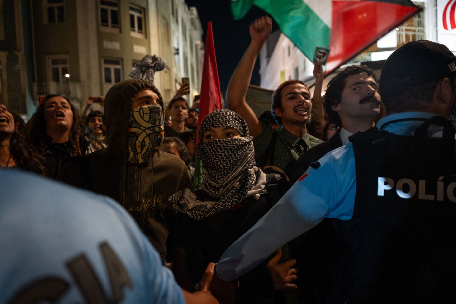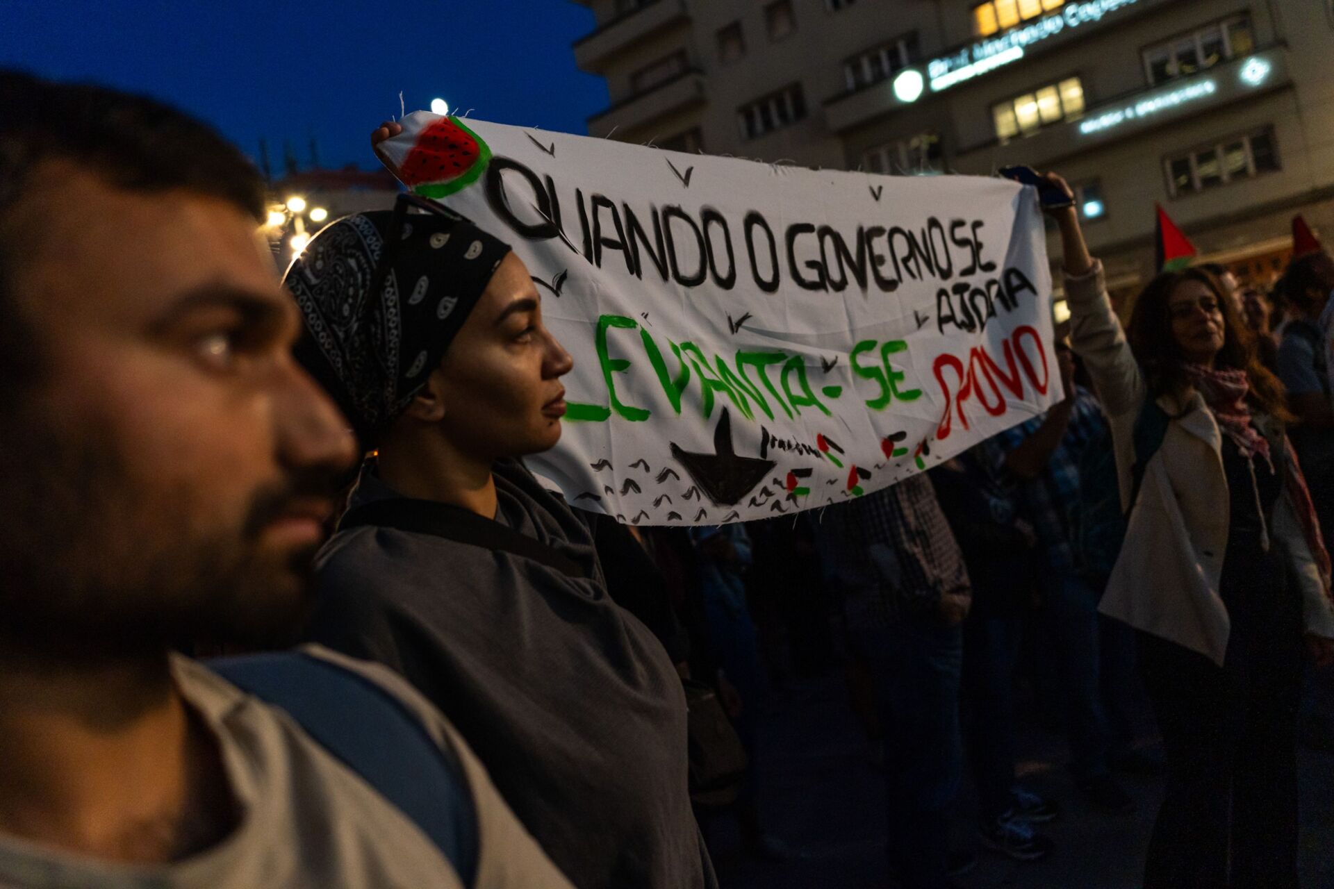 Milhares de pessoas manifestaram-se, esta quinta-feira, na Praça D. João I, no Porto, em solidariedade com os ativistas portugueses detidos por Israel. Foi cortada a circulação ao trânsito no centro da cidade.