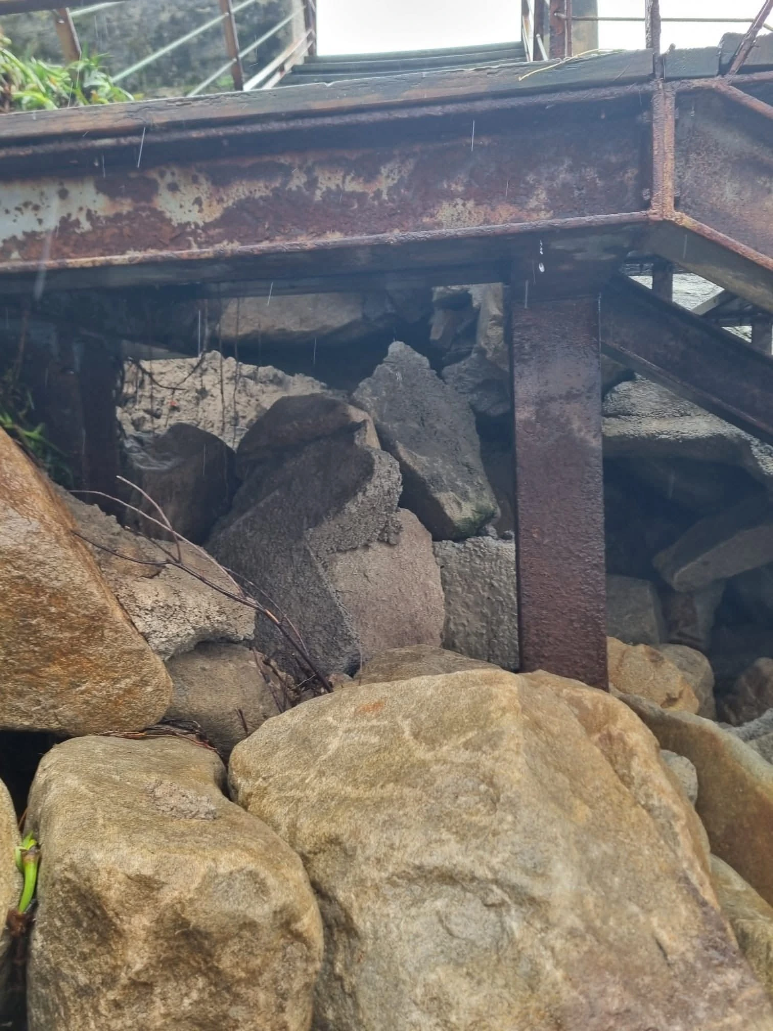 Mar escava areia debaixo do paredão de Moledo e passeio colapsa