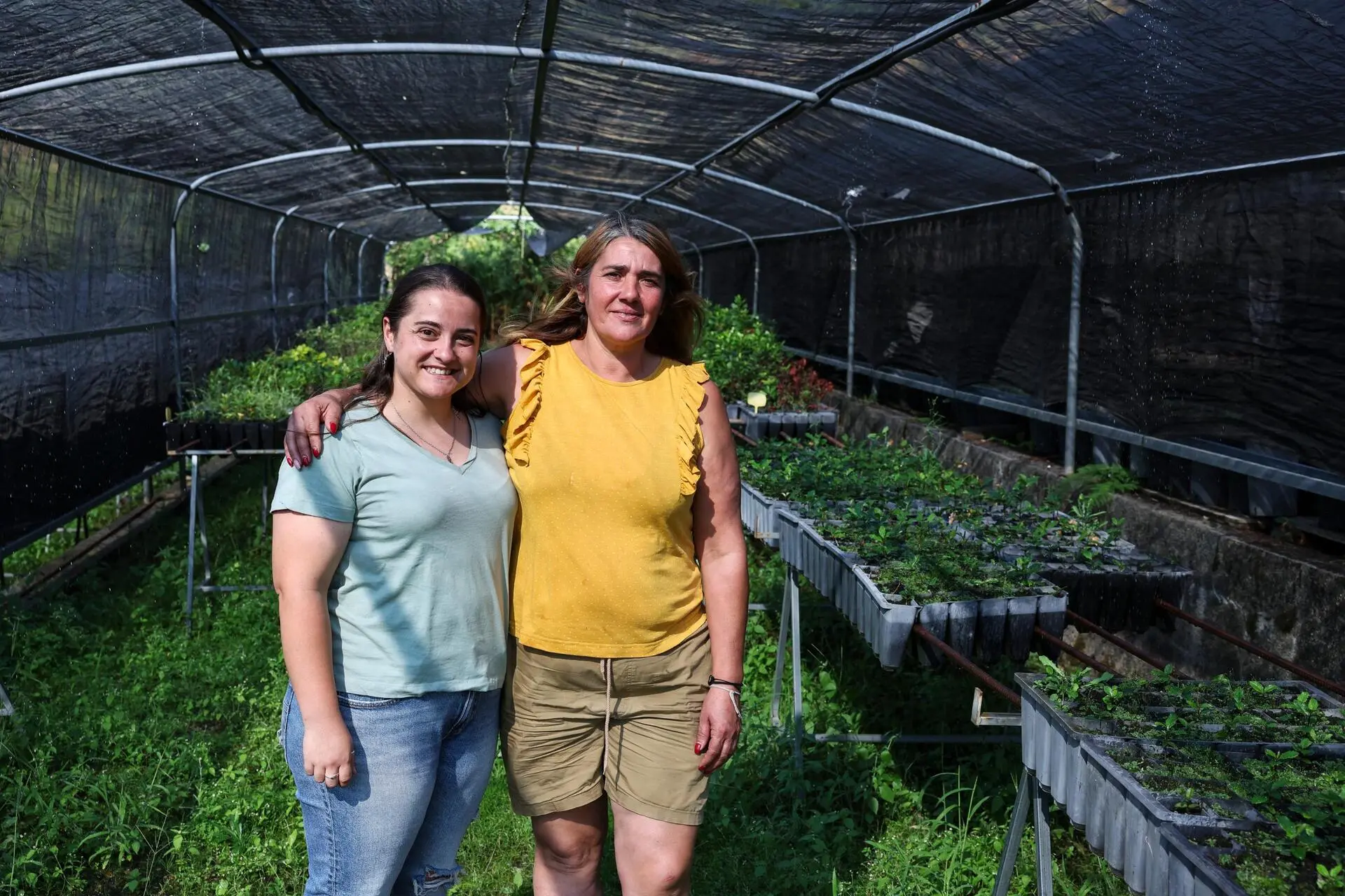 Cátia Lucas e Lurdes Lopes, funcionárias da Lousitânea, na maternidade de espécies autóctones