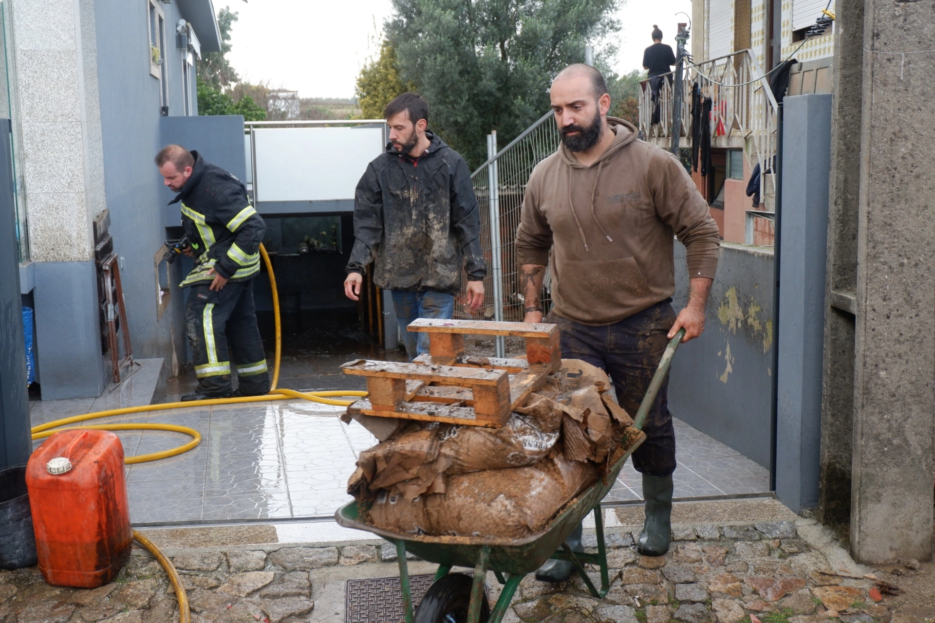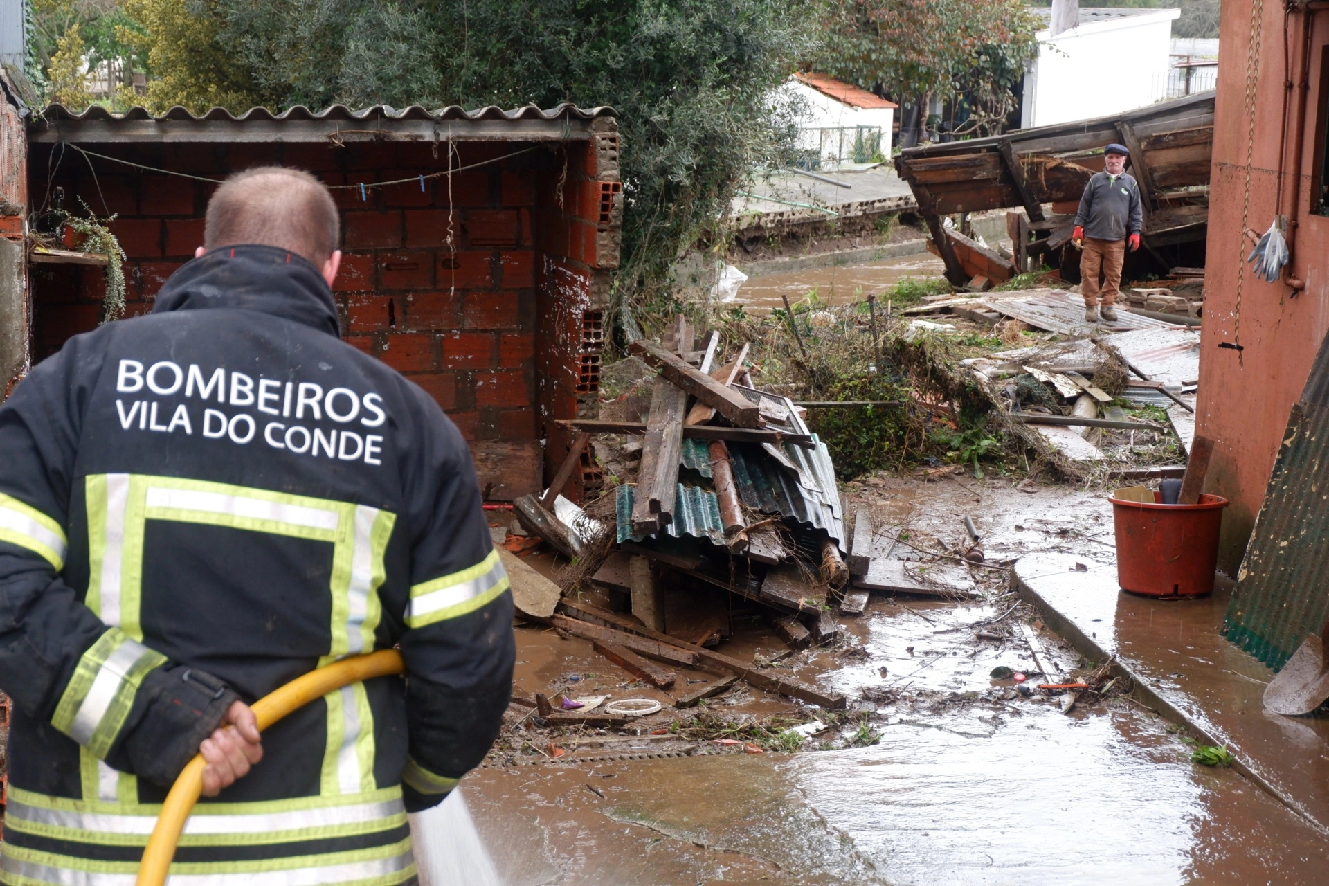 Conceição Ferreira mora em Vila do Conde há mais de meio século e, aos 85 anos, nunca viu "coisa igual". "Parecia o fim do mundo!", atira, ainda sem parar de tremer, mesmo que agora já não veja só água em redor. Na rua da Lage, em Modivas, a ribeira galgou as margens, inundou as ruas, levou muros e portões à frente e invadiu as casas. Em alguns locais, a água subiu quase dois metros. Durante a madrugada, nem os bombeiros lá conseguiam chegar. Entre gritos de desespero e gente que perdeu tudo, valeu a entreajuda.