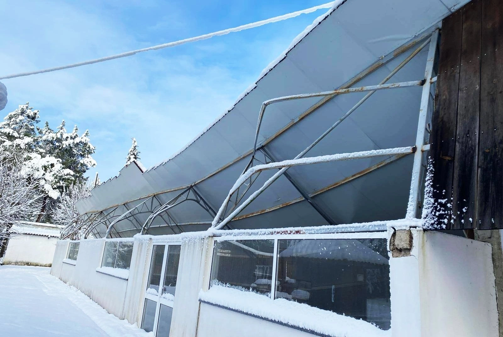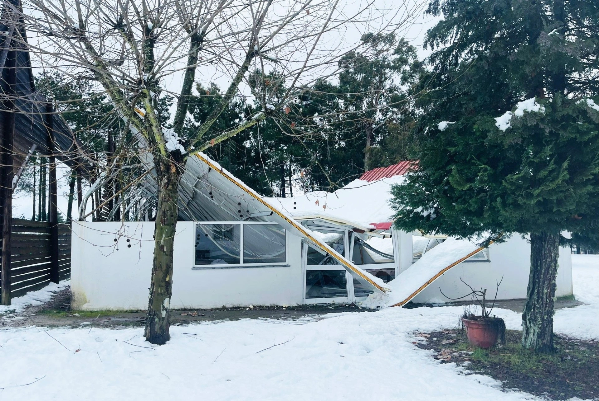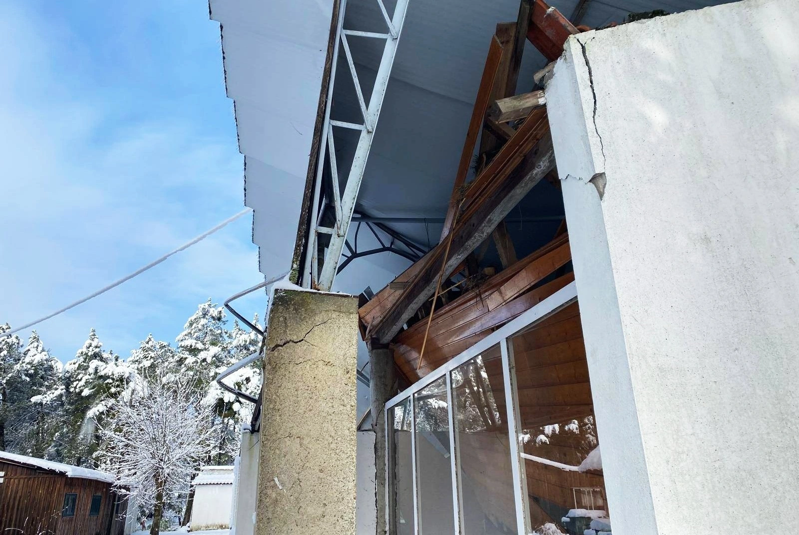 Cobertura não aguentou o peso da neve, que chegou aos 35 centímetros em partes do centro de formação. Prejuízo pode chegar a 25 mil euros.