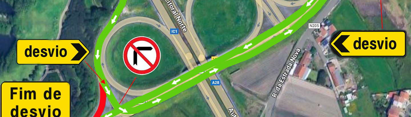 O nó da A28, na Póvoa de Varzim (ramos da saída Norte - Sul, direção Norte/Sul), vai ter constrangimentos de trânsito nos próximos 70 dias.