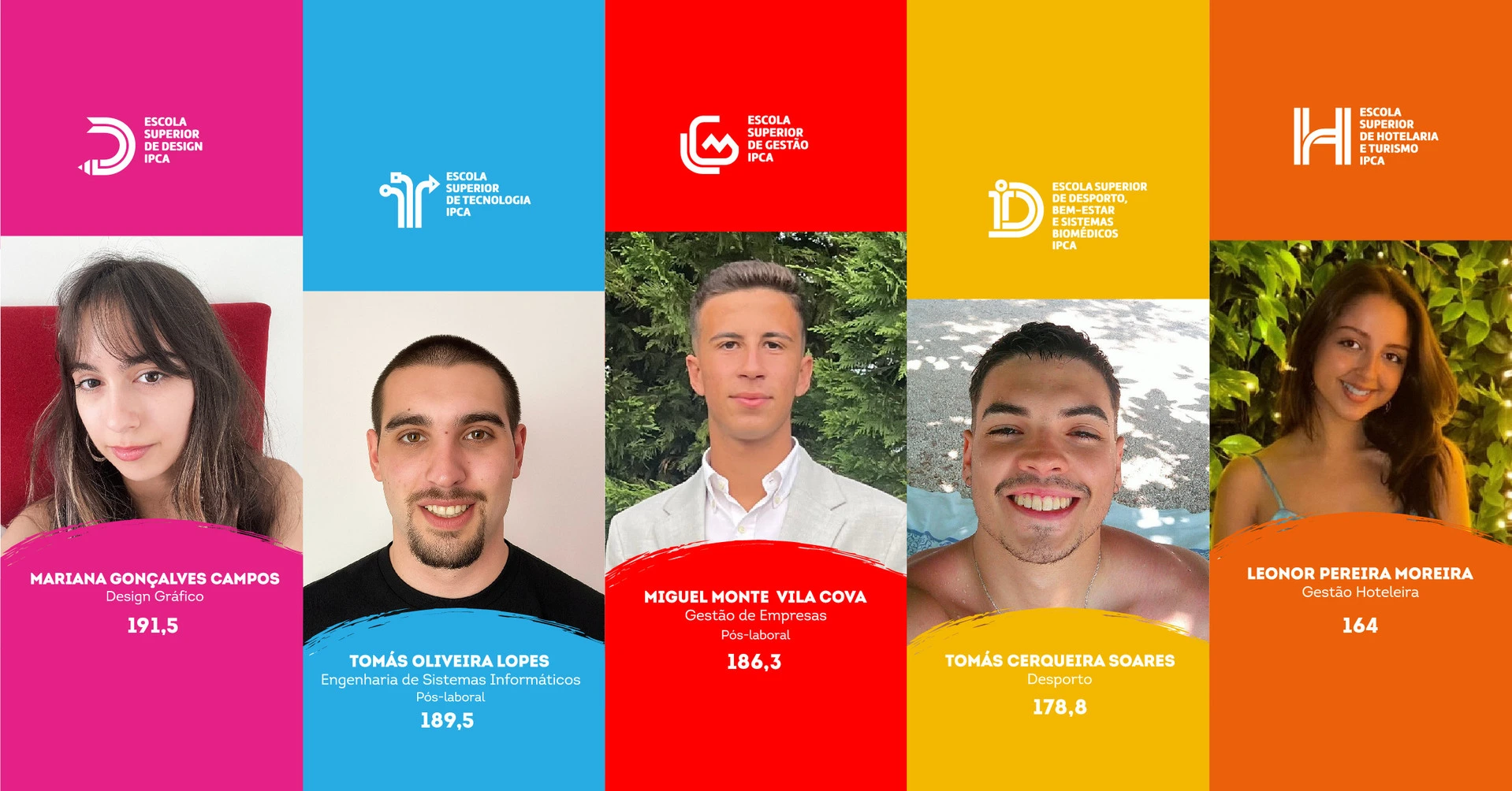 Mariana Campos, natural de Barcelos, foi a estudante com a média mais elevada (191,5 valores), ingressando em Design Gráfico, licenciatura disponível em poucas instituições no país. Tomás Oliveira, de Braga, regressa ao ensino superior com 25 anos para frequentar Engenharia de Sistemas Informáticos em regime pós-laboral. Miguel Vila Cova, atleta da equipa sénior do Varzim (milita na Liga 3), concilia agora o futebol com o curso de Gestão de Empresas, também em pós-laboral. Já Tomás Soares, de Braga, deixou as engenharias para seguir a área do Desporto, enquanto Leonor Moreira, de Matosinhos, aposta na Gestão Hoteleira, inspirada pelo negócio familiar ligado à restauração.