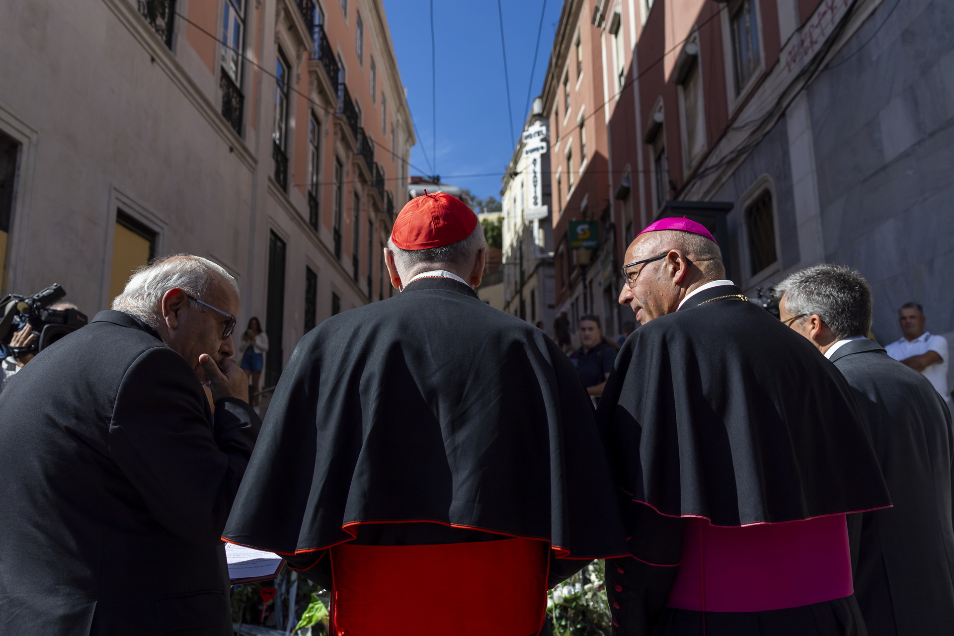 Acompanhado pelo cardeal-patriarca de Lisboa, Rui Valério, e pelo presidente da Câmara Municipal de Lisboa, Carlos Moedas, Parolin rezou as orações "Pai Nosso" e "Ave Maria" perante as dezenas de pessoas que passavam e se juntaram ao momento.