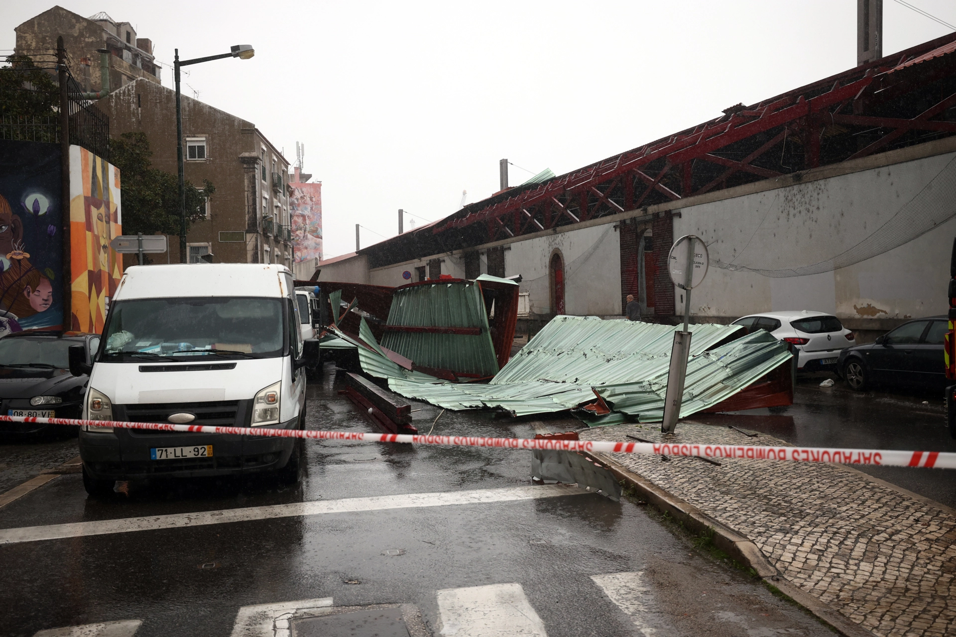 O vento forte que se faz sentir sobre Lisboa arrancou, na manhã desta quarta-feira, uma grande parte do telhado de alguns armazéns da Estação de Santa Apolónia, em Lisboa. Alguns carros estacionados no local foram atingidos, mas não há feridos. Alexandre Rodrigues, comandante do Regimento de Sapadores de Lisboa, diz que poderá ter sido o resultado de um minitornado.