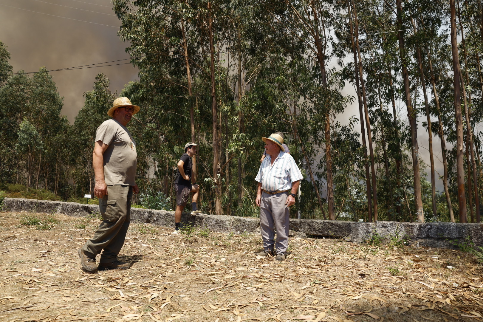 Ali, na fronteira com Castelo de Paiva, o fogo ameaça as localidades de Santa Eulália e Celadas, onde moram, no total, menos de 20 pessoas, que estão confinadas nas aldeias. As labaredas já não estão muito longe, mas o presidente da Junta de Santa Eulália, Élio Soares, acredita que não haverá vítimas, nem grandes danos materiais. Nem todos pensam assim. Os filhos de um homem que em 2016 perdeu a casa, em Celadas, receiam que o fogo repita a tragédia, logo agora que a casa finalmente está acabada. Estão transtornados, não querem falar, nem precisam para dizer tudo.