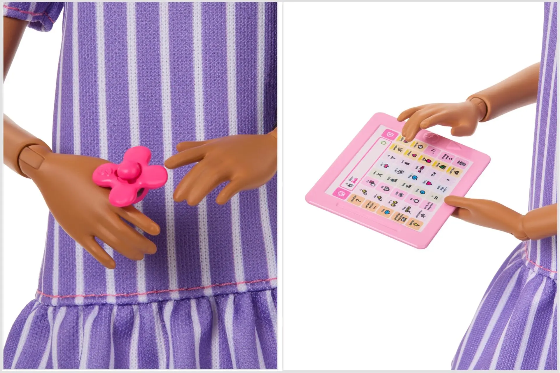 A nova Barbie autista vem equipada com fidget spinner, auscultadores que bloqueiam ruídos e tablet com símbolos de comunicação alternativa, refletindo ferramentas que ajudam algumas crianças a lidar com sobrecarga sensorial